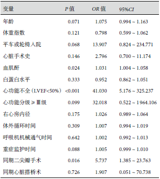 表4 基于倾向性评分匹配三尖瓣置换住院死亡单因素 logistic 回归分析