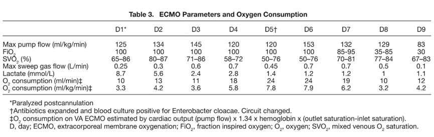 肺出血(PH)在足月新生儿中是一种罕见但可能致命的事件。由于ECMO时需使用预防血栓形成的肝素,可能会增加PH死亡风险,ECMO期间成功管理PH的报道非常有限。我们报告一例缺氧缺血性脑病的足月新生儿接受控制低温治疗后出现缺氧呼吸衰竭、血流动力学不稳定、阴肠杆菌肺炎和脓毒症并伴有严重PH,需要VA-ECMO支持。我们描述了用于这名患儿的VA-ECMO的治疗策略,包括夹闭气管内导管,积极纠正凝血障碍,使用α链激酶,并详细说明了在脓毒症导致肺炎恶化之前的ECMO运行过程中参数指标的细微变化。